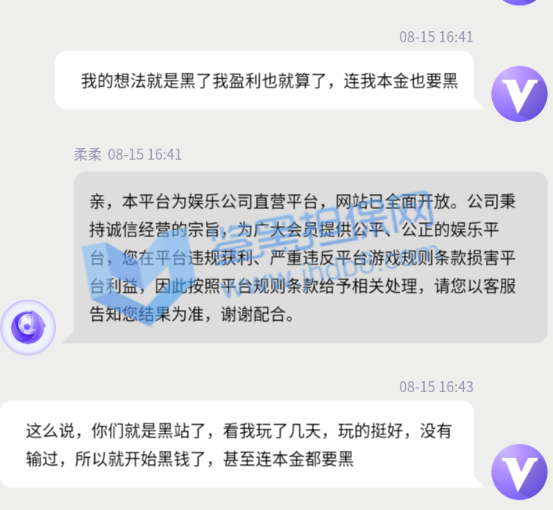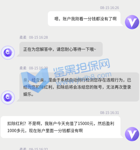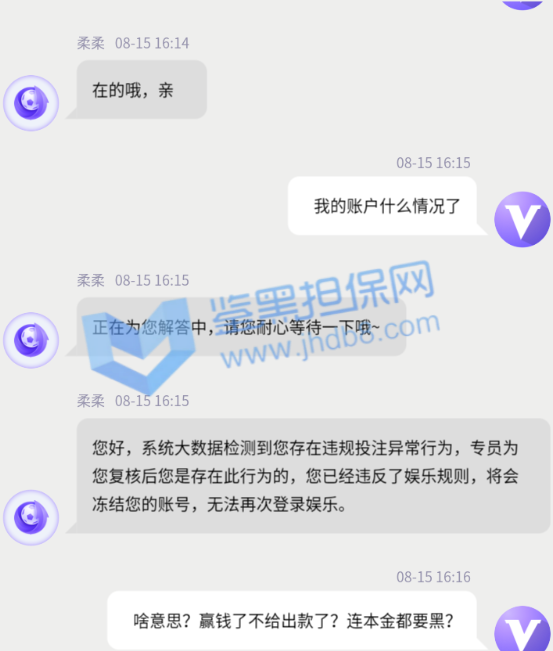 我是2021年8月10日注册的,到8月15日是第5天了,今天15:05分存款了15000元,玩彩票极速11选5,玩了一会,盈利了1240元,本着见好久收,然后就选择提款了,提款时间是15:20分,结果一直是审核中,过了有1个小时吧,提款失败了。于是便去问客服,客服说由于目前国际网络波动导致系统出款失败,请我重新提交提款,于是我便看了钱包,余额变0了,锁定钱包是16240元,于是便又问客服,客服又说系统大数据检测到了存在违规投注异常行为,违反了娱乐规则,将会冻结账号,无法再次登录娱乐。于是我便和客服说,不存在非法投注的情况啊,我昨天前天大前天都是这么玩的啊。于是客服说正在为我提交本金,然后让我进行提款,然后我又返回钱包看,余额还是0元,锁定钱包变成了1240元,等于我15000的本金存粹没有了。便又问客服去了,客服说系统自动例行检测我存在违规行为,且情节较为严重,已经扣除红利,并冻结账号,无法登录娱乐。然后说由于各部门分工不同,在线客服无法干涉到其他部门的工作程序,客服仅负责告知。然后我又问客服,客服翻来覆去就是那么几句话,说我非法投注,违规投注,违规获利,严重违反平台游戏规则损害平台利益,按照平台规则给予相关处理,以客服告知我的结果为准。反正就是不给出款,盈利不给,本金也不给。我多次和客服说,没有违规啥的,也不理,最后干脆对我爱理不理了。