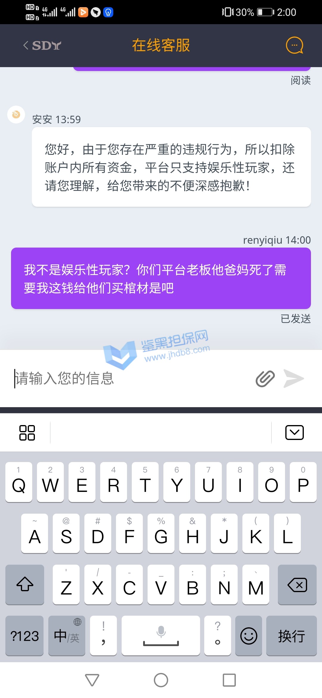 4.用户提交维权需为本人提交,若代替让人发布维权鉴黑担保网将拒绝受理;