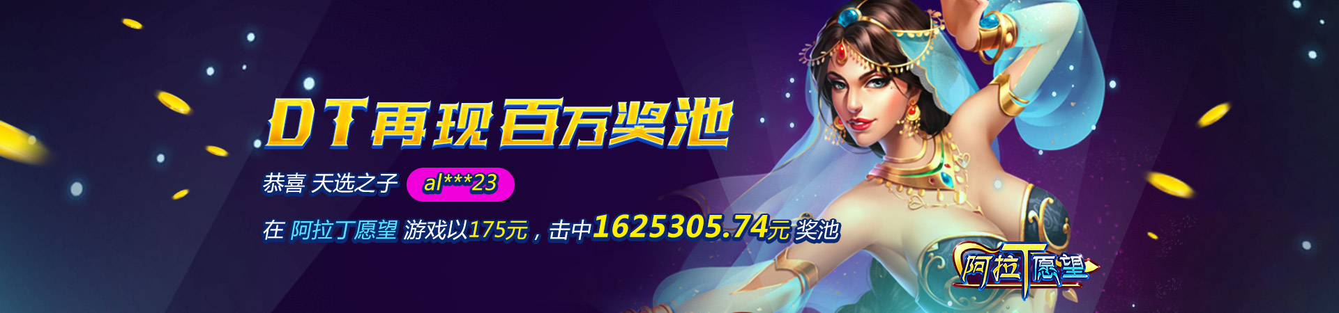 恭喜亚博会员yb**98在DT平台《阿拉丁愿望》游戏喜中 150万 奖池彩金!
